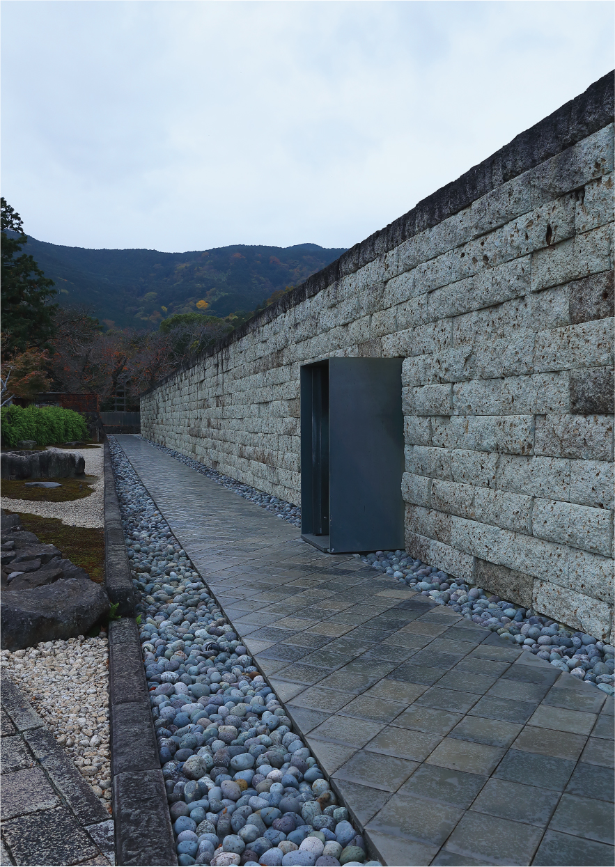 日本の建築は、木・石・土といった自然素材を中心に発展し、地形や気候と密接に関係してきた。江之浦測候所の主要施設のいくつかは海に向かう地形を生かし、光の取り込みや眺望が空間構成の要素になっている。