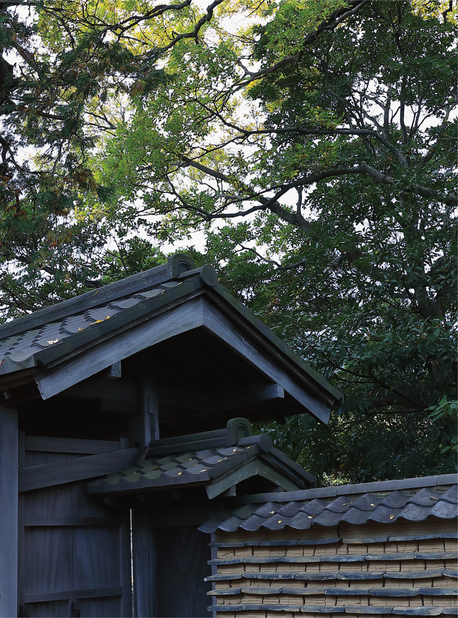 Beyond a “Stone Torii Gate”, the air seems to change with the presence of wooden joinery. A relocated gate from the villa of the famous “Naraya” stands quietly.
