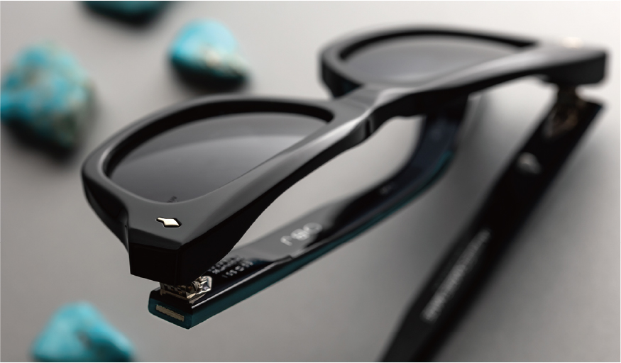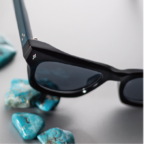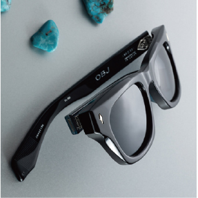 The collaboration between OBJ and JACQUES MARIE MAGE (JMM) one of the world’ s foremost luxury eyewear brands-has given rise to an exclusive color edition of JMM’s iconic DEALAN. As its name suggests, the DEALAN draws inspiration from the sunglasses favored by Bob Dylan, a true cultural icon. With its voluminous, fox-shaped silhouette carrying the sharp spirit of its era, this special edition subtly incorporates OBJ’s exclusive black-turquoise hue into the temples. Indigo acetate layers the front, while black lines the back, a design detail that quietly pays homage to Native American culture-a lifelong source of inspiration for JMM creative director Jerome Mage. A blue jewel that shines dully in the darkness. Try adding a touch of color to your profile with this one-of-a-kind, specially ordered color.