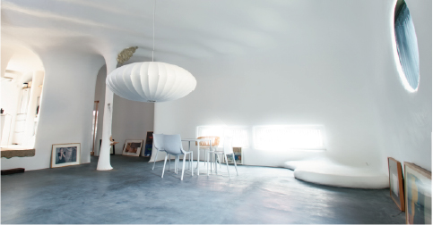 理想の形は卵だという。「だから僕の名刺の裏には卵が描かれています。空間でいえば球体が理想だと考えています。美しくアールを描くライン、その中で光も空気も回る、つまり自然に循環します。それはとてもエネルギー効率が良く、人の感覚的にも気持ちいい。球体が建物の究極の形ですが、これをつくるのが構造的に難しい」。