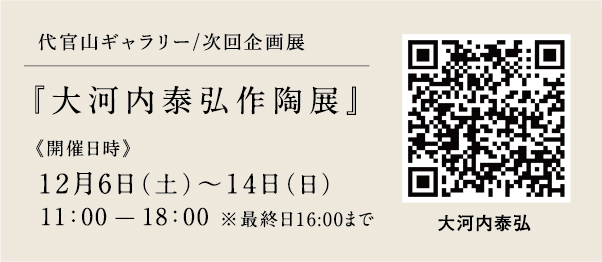 『代官山ギャラリー』では主に工芸作品を扱っている。「以前、介護をしている時期があり、そこに全集中力を傾けてしまい、疲れ切ってしまったことがありました。このままではいけない、自分のためになにかをしなければと思い陶芸をはじめ、精神的に助けられました。また、旅行先で美術館に行くことが好きで、そこで美しい工芸品に出会うことが多くありました。そういった経験から工芸作品を主に扱うギャラリーにしようと決めました」。