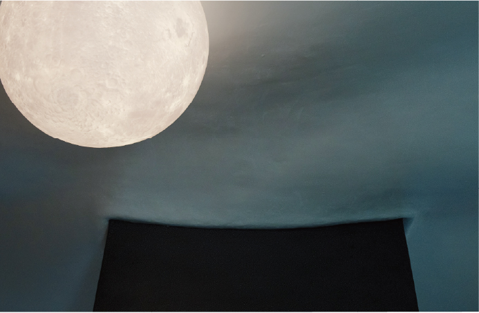 玉木さんがいうように、ここにいると飽きることがない。時間の経過とともに窓から差し込む陽光が移動し、それにともなって影が動く。室内に風景がある、それが『Ars Kmw』だ。「ここの設計を手がける頃、出雲に出向く機会がありました。日御碕に寄ったのですが、それがちょうど満月の夜。雲間に月が輝き、その下には暗い海が広がっている。その景色が忘れられず、この空間に表現しました」。人工のものも自然の一部になれる。そんな特別な空間でアートを鑑賞できる。若山さんと玉木さんのこだわりが『Ars Kmw』を唯一無二の場所にした。