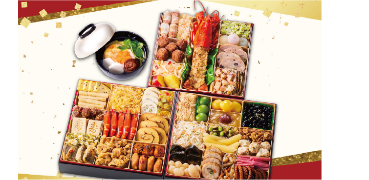 特大重箱に盛り付けたおせちは圧倒的ボリューム!シェフ自慢の「オマール海老のグラタン」は絶品!「雑煮出汁」までついたお正月を鮮やかに彩るワンランク上の逸品。