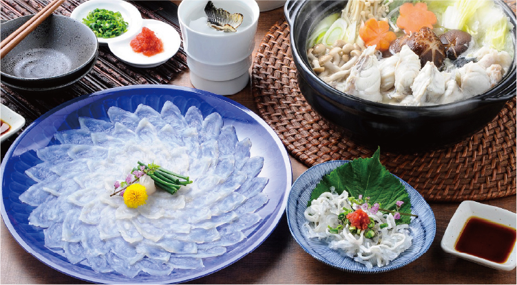 新松浦漁協は養殖トラフグの生産量日本一!海が荒れると養殖作業は大変なものの、潮通しの良い松浦市の海で育てられたとらふぐは、臭みも無く透き通った身の歯ごたえと上品な甘さで、天然物に負けない味わい。この機会にお召し上がりください。