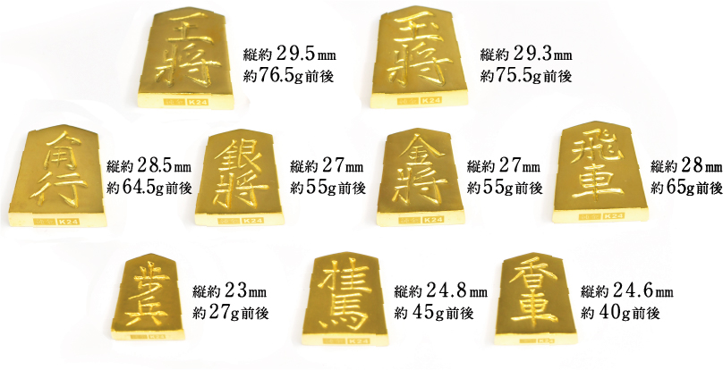 純金製(K24)黄金将棋の駒9種コンプリートセット