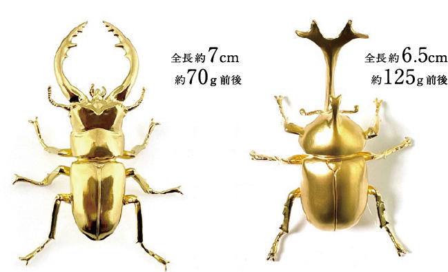 純金製(K24)鋸鍬形(ノコギリクワガタ)&兜虫(カブトムシ)セット